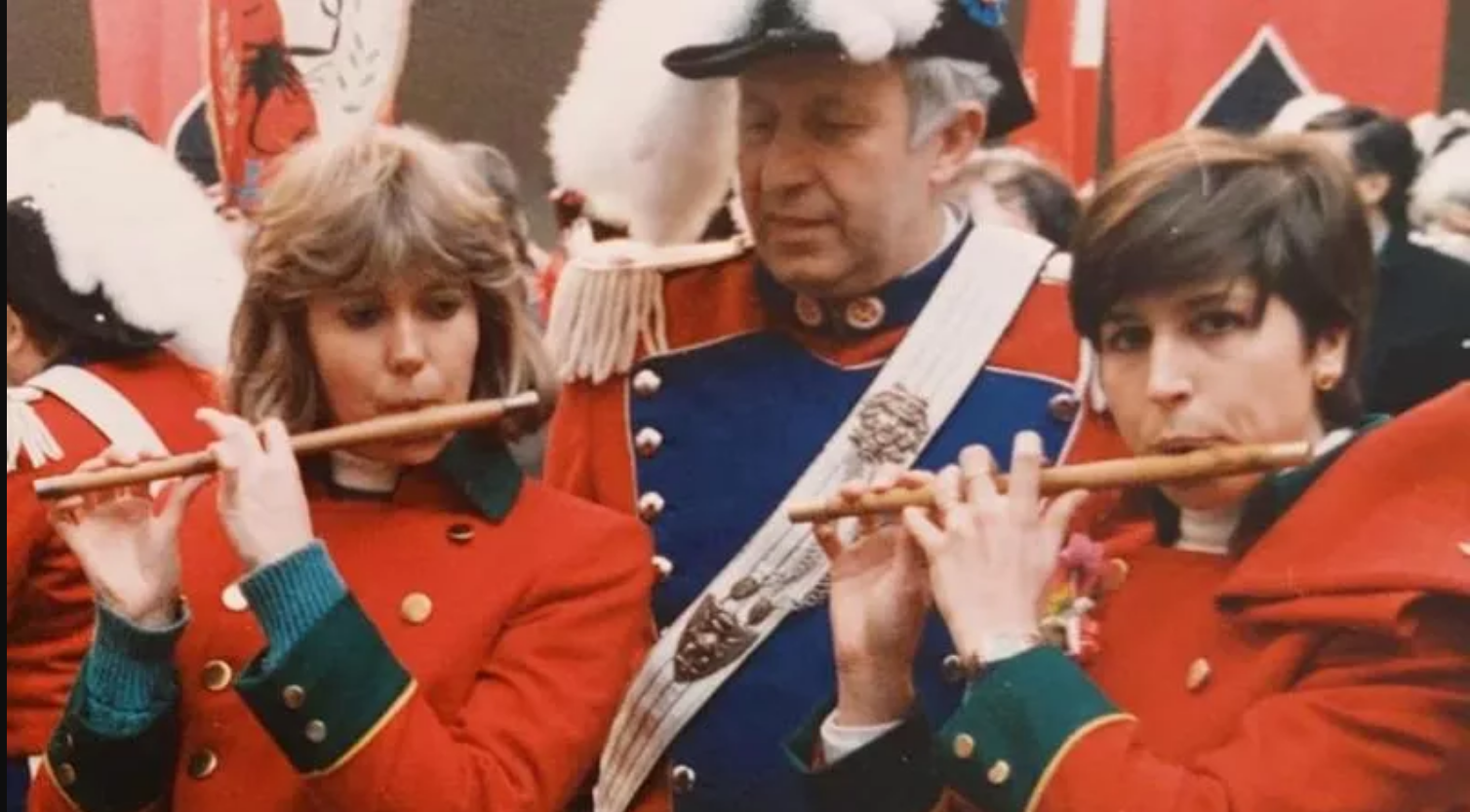 del Carnevale“, l’inno ufficiale della festa che, nelle sue parole, celebra la rivolta popolare contro il tiranno[7]. Tuttavia l’animazione musicale della festa spetta soprattutto alla Banda dei Pifferi e Tamburi, altro elemento tipico che connota il Carnevale d’Ivrea. La banda, in uniforme con giubba rossa e pantaloni verdi, marcia in testa al corteo storico eseguendo una serie assai ampia di arie sette-ottocentesche modulate sui sei fori dei pifferi costruiti in legno di bosso, e ritmate dal suono dei tamburi e di una grancassa[8]